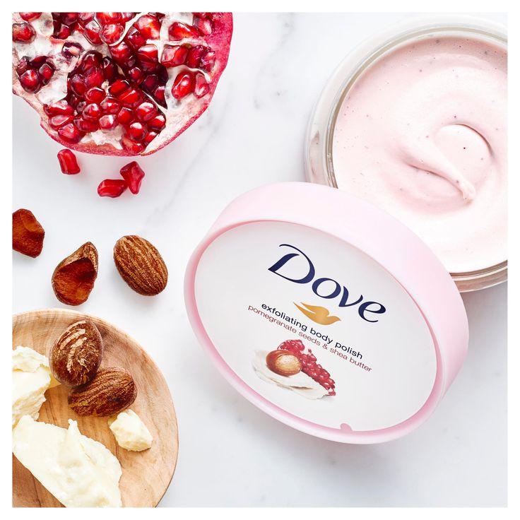 Dove scrub gentle on your skin. leaves you a perfect glowing skin