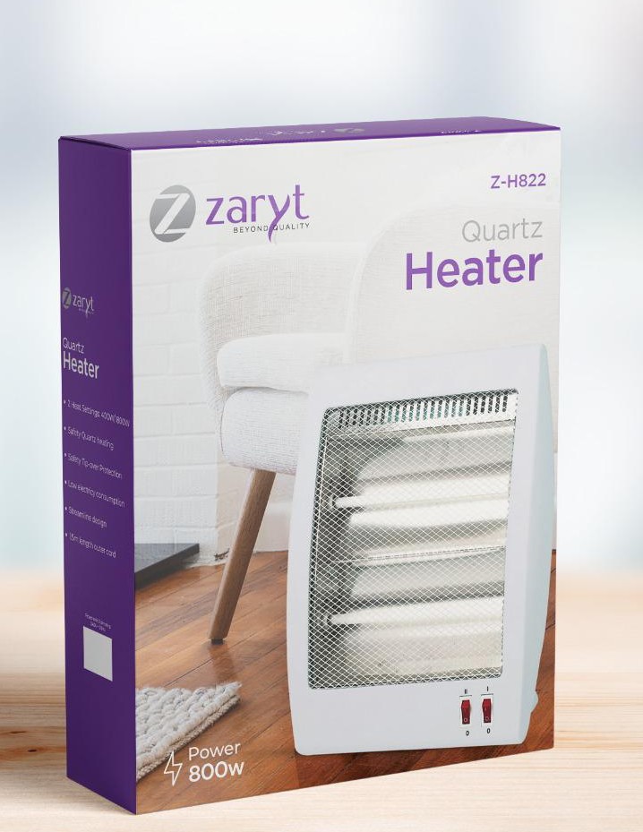 800W quartz room heater ,2 heat setting 400w/800W, tip-over safety switch ,streamlined body design ,1.5 long electrical cord